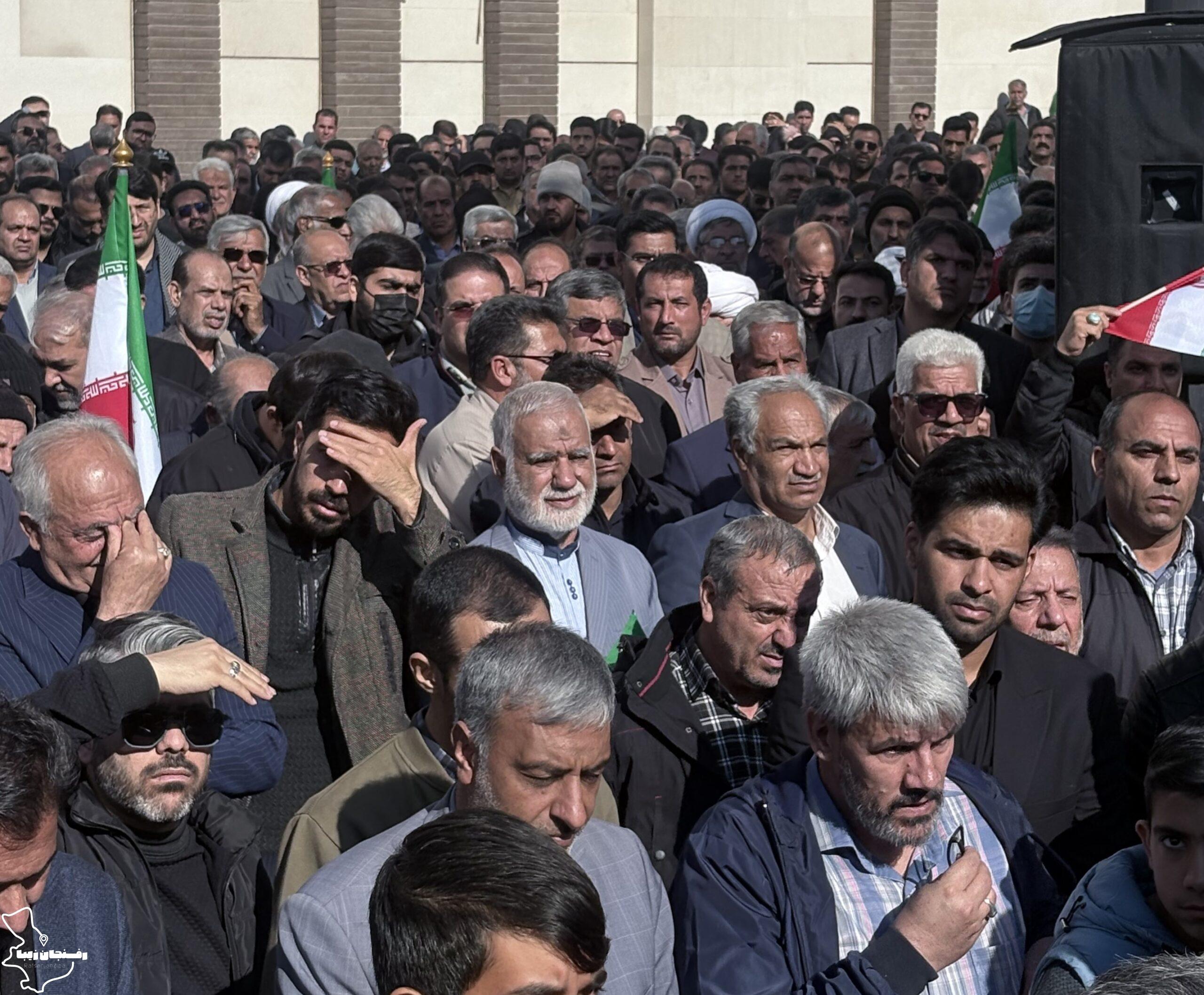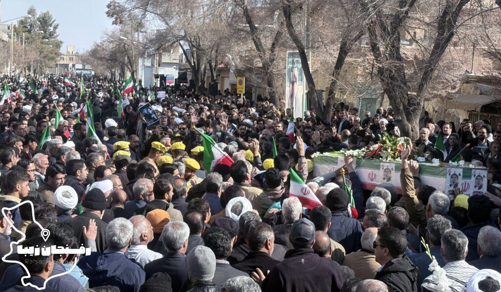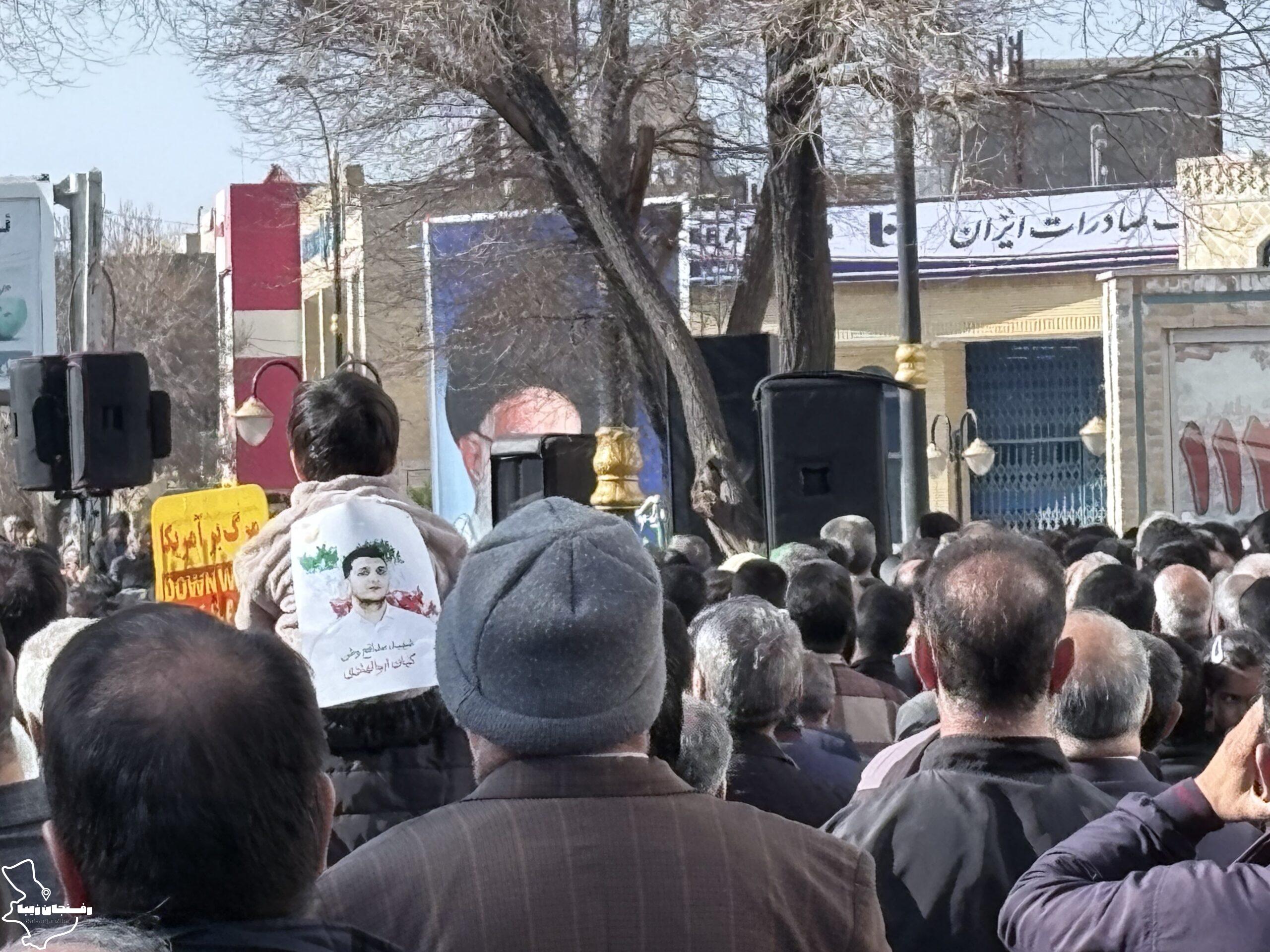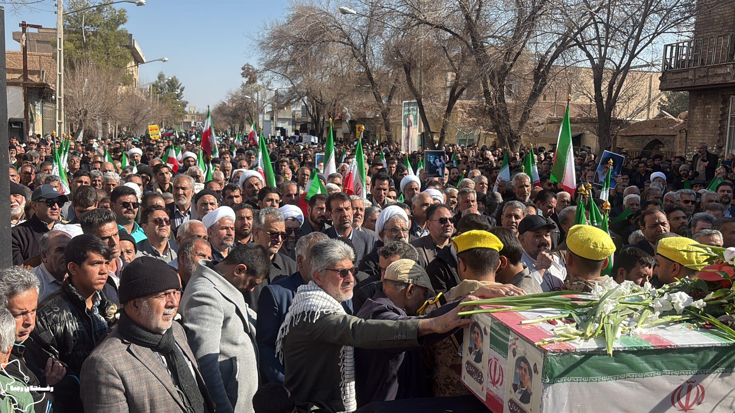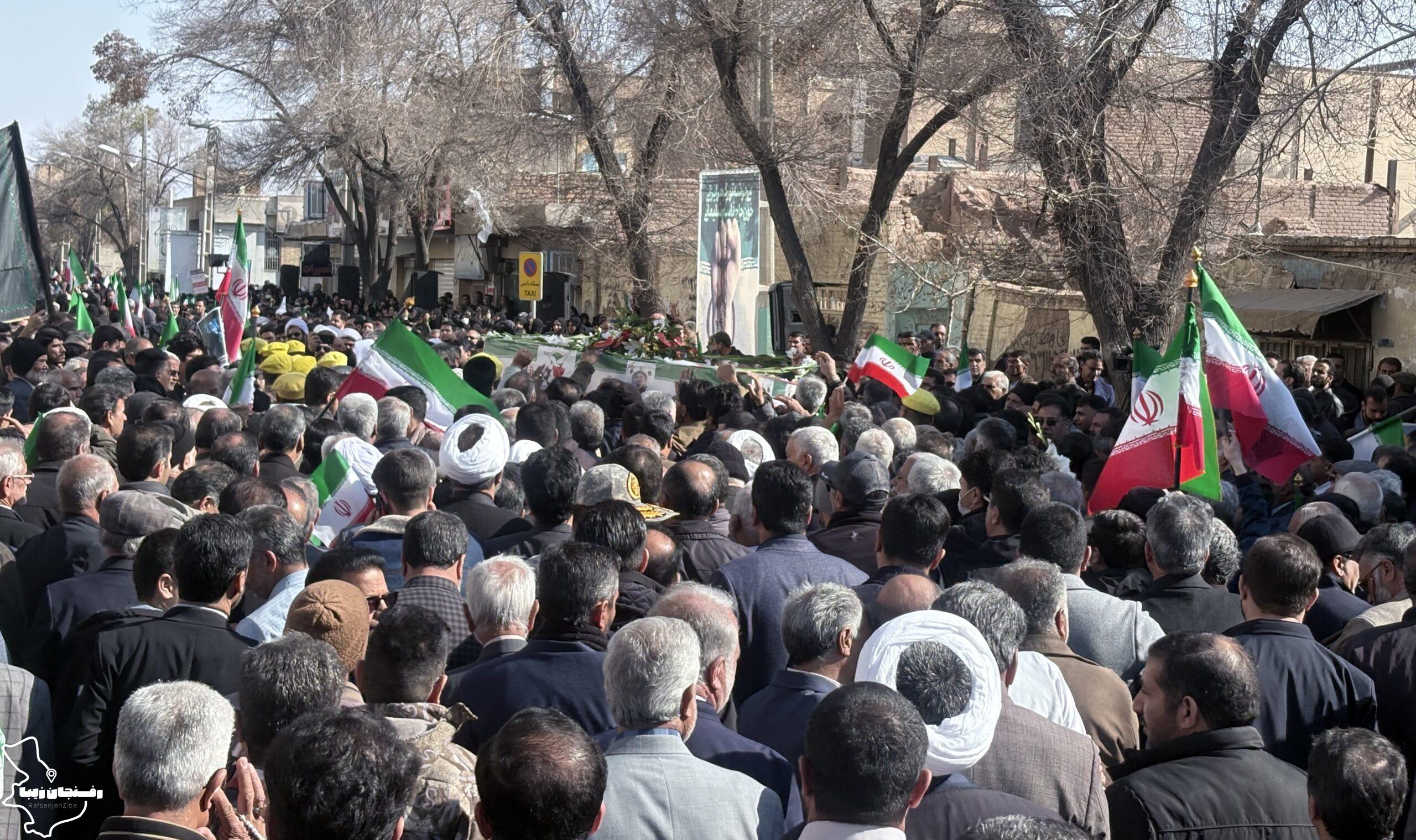 رفسنجان زیبا | همزمان با اجتماع مردمی محکومیت اغتشاشات در شهرستان رفسنجان که صبح روز دوشنبه ۲۲ دی در میدان حضرت ابراهیم(ع) و خیابان سعدی برگزار شد، پیکر شهید مدافع امنیت «کیان ابوالهادی زاده» تشییع و در مزار کمال آباد به خاک سپرده شد.