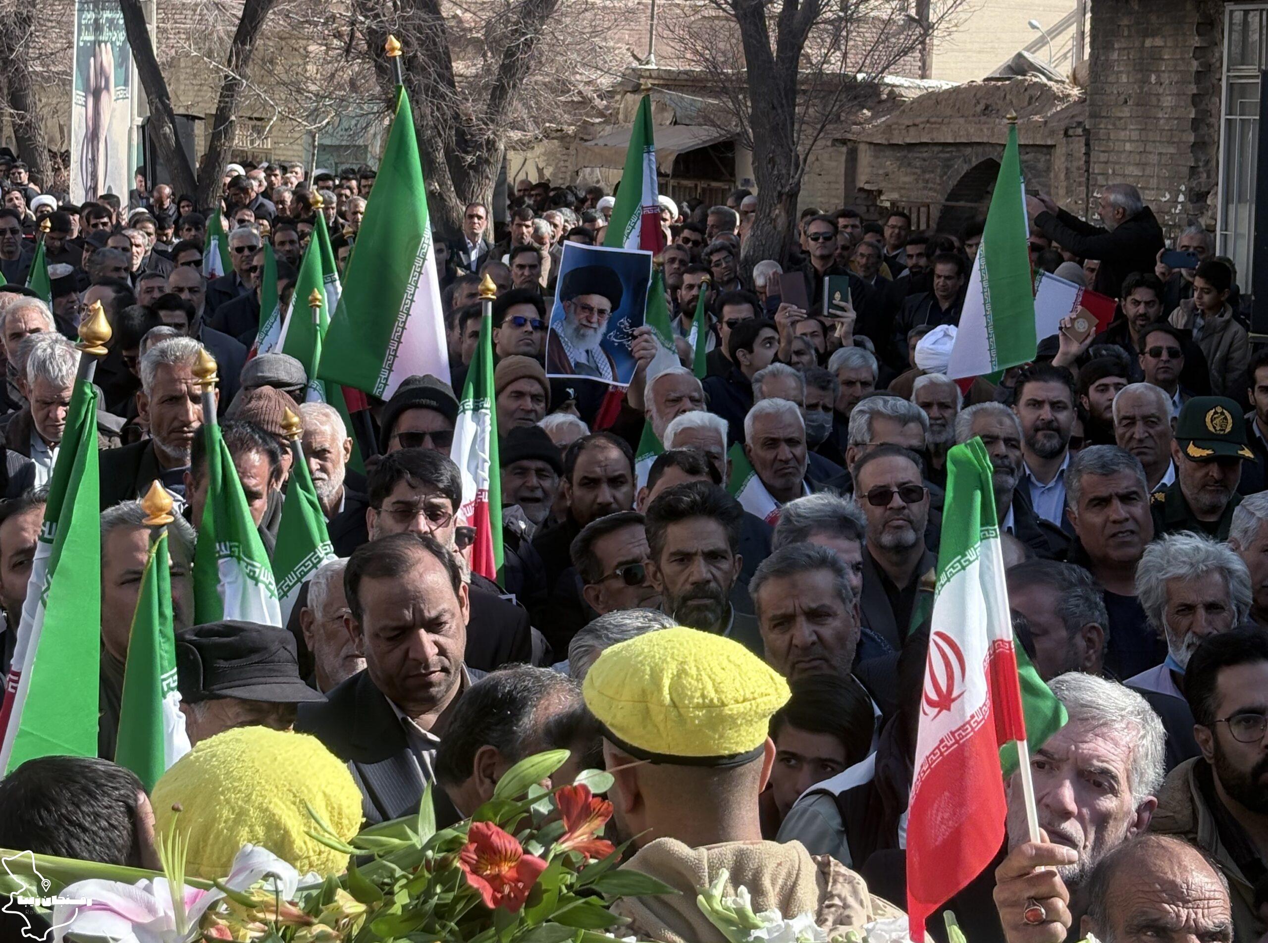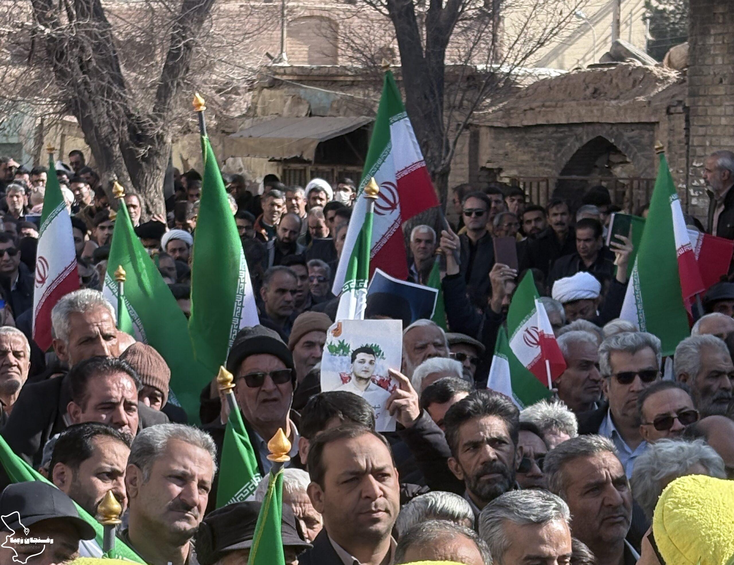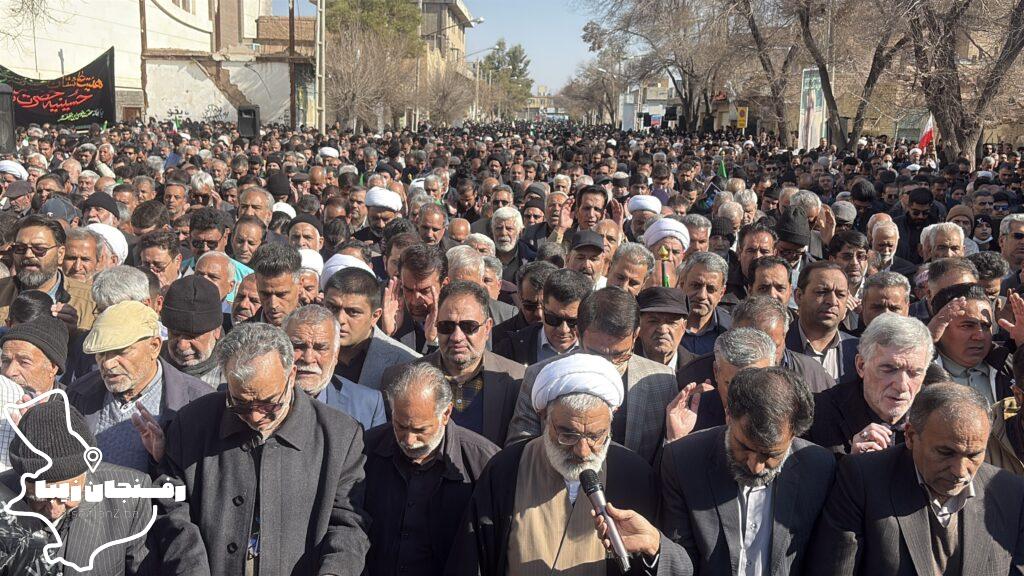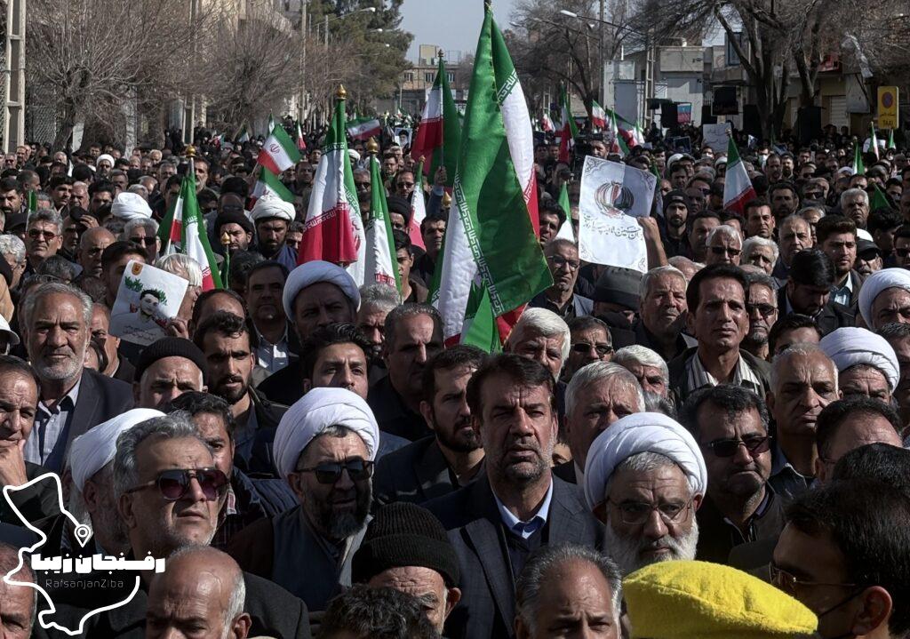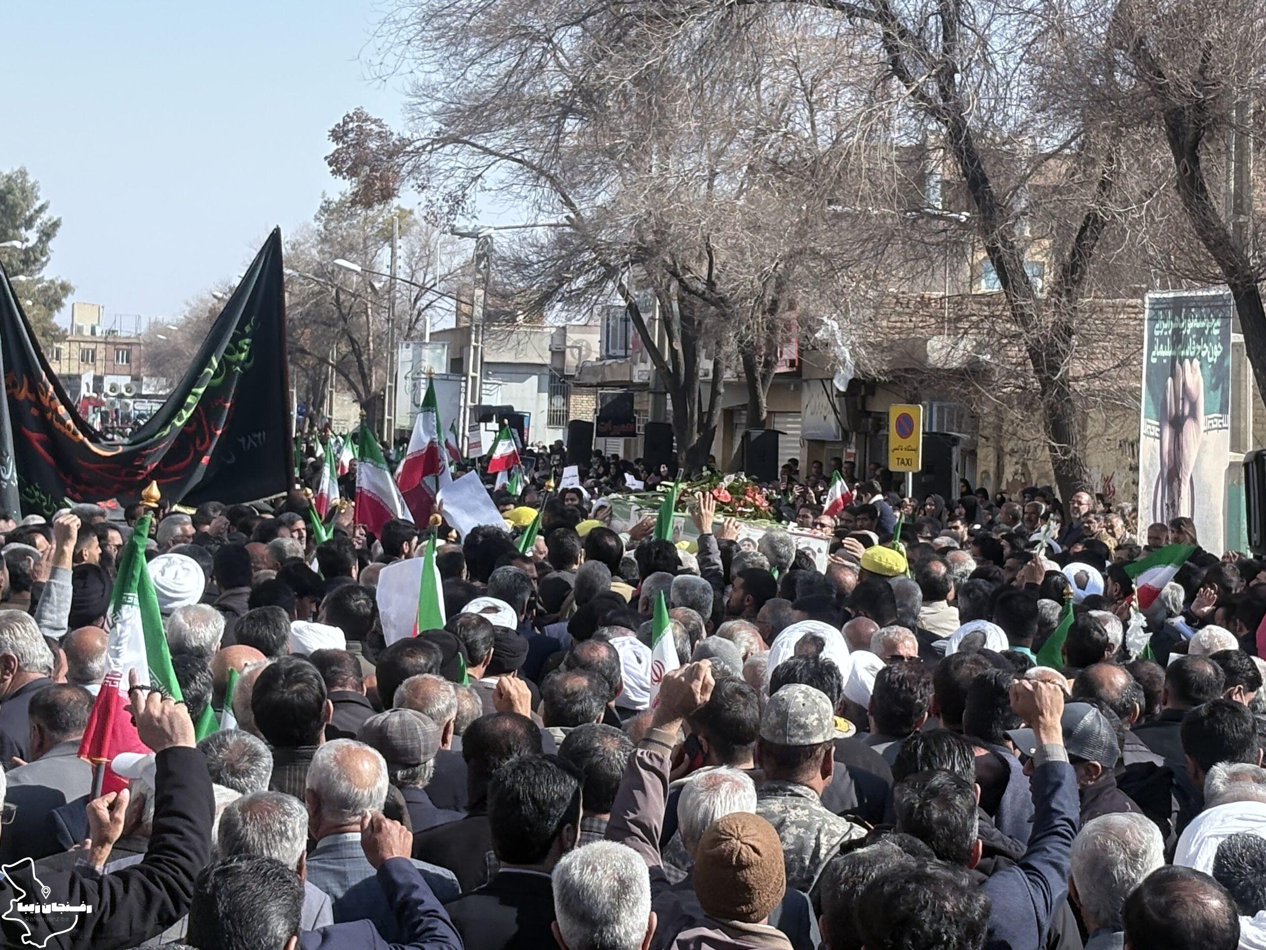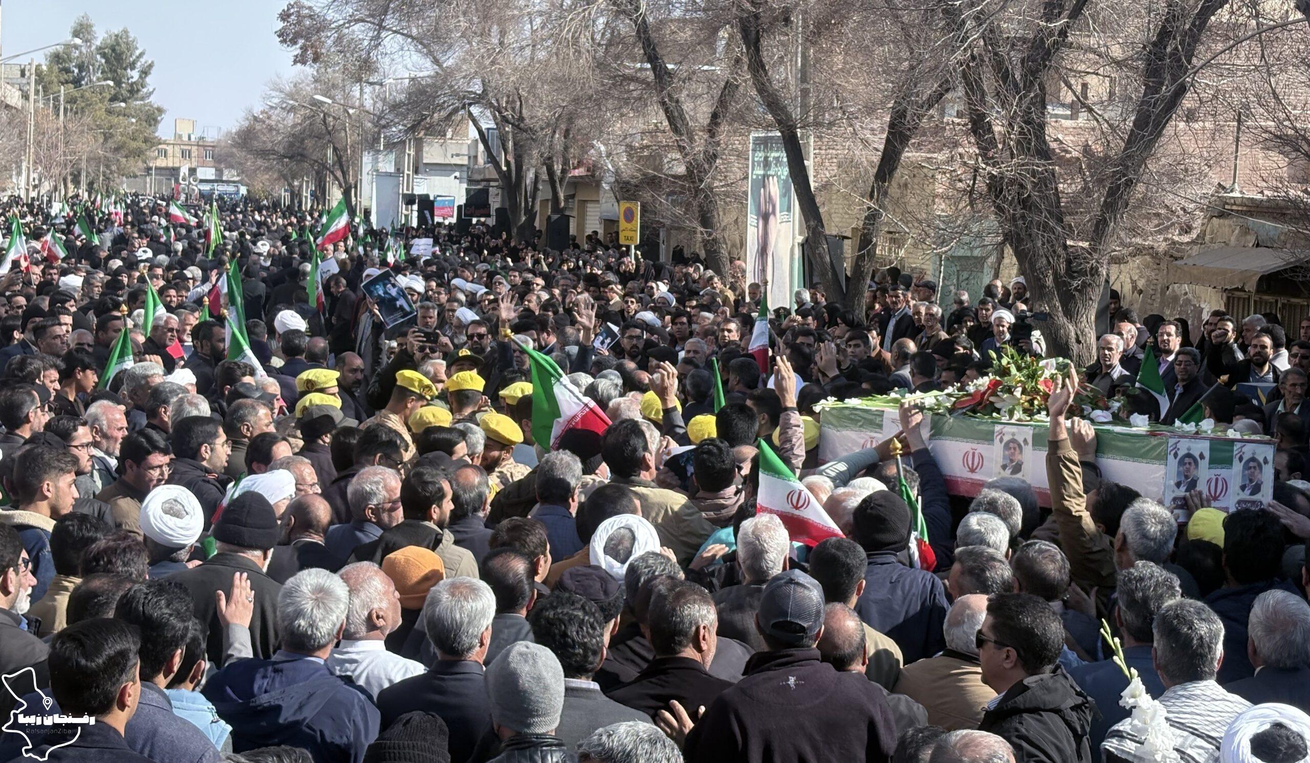 رفسنجان زیبا | همزمان با اجتماع مردمی محکومیت اغتشاشات در شهرستان رفسنجان که صبح روز دوشنبه ۲۲ دی در میدان حضرت ابراهیم(ع) و خیابان سعدی برگزار شد، پیکر شهید مدافع امنیت «کیان ابوالهادی زاده» تشییع و در مزار کمال آباد به خاک سپرده شد.
