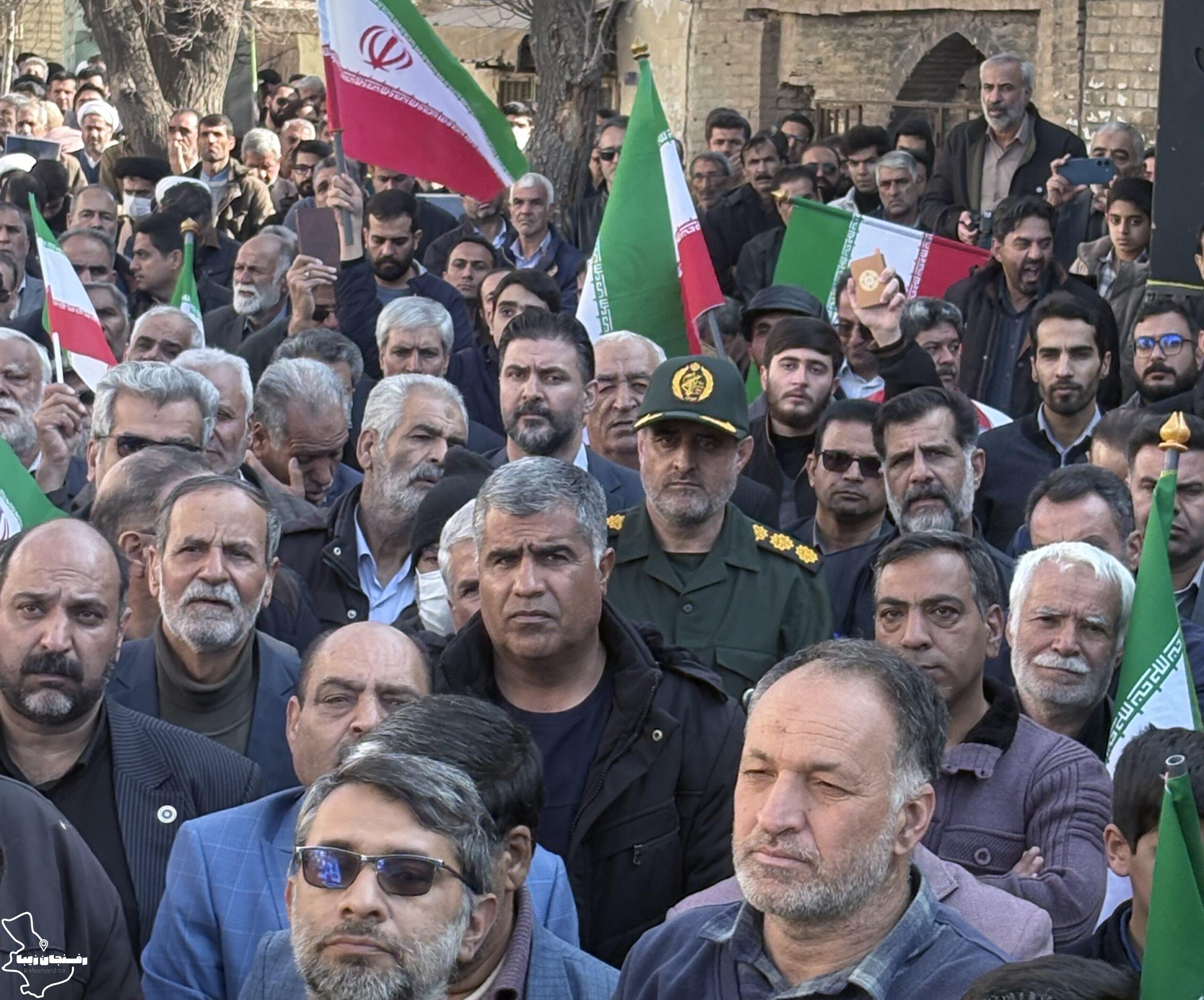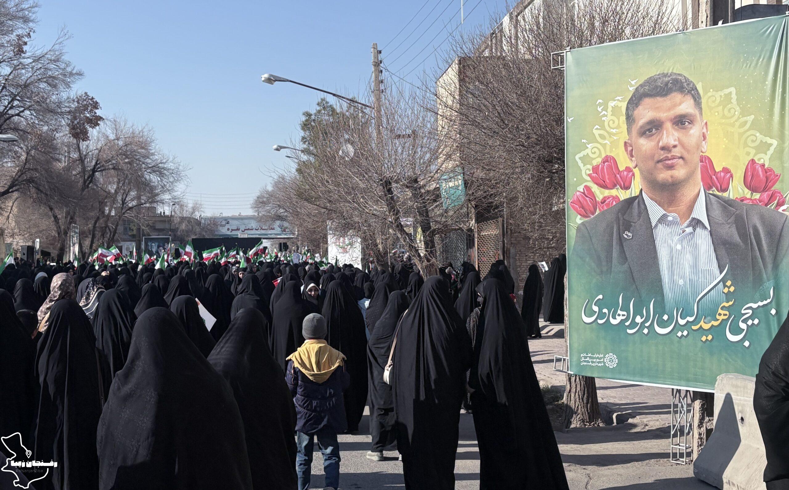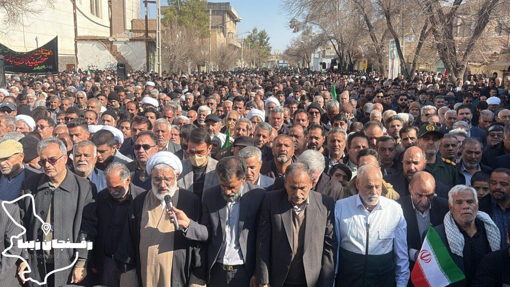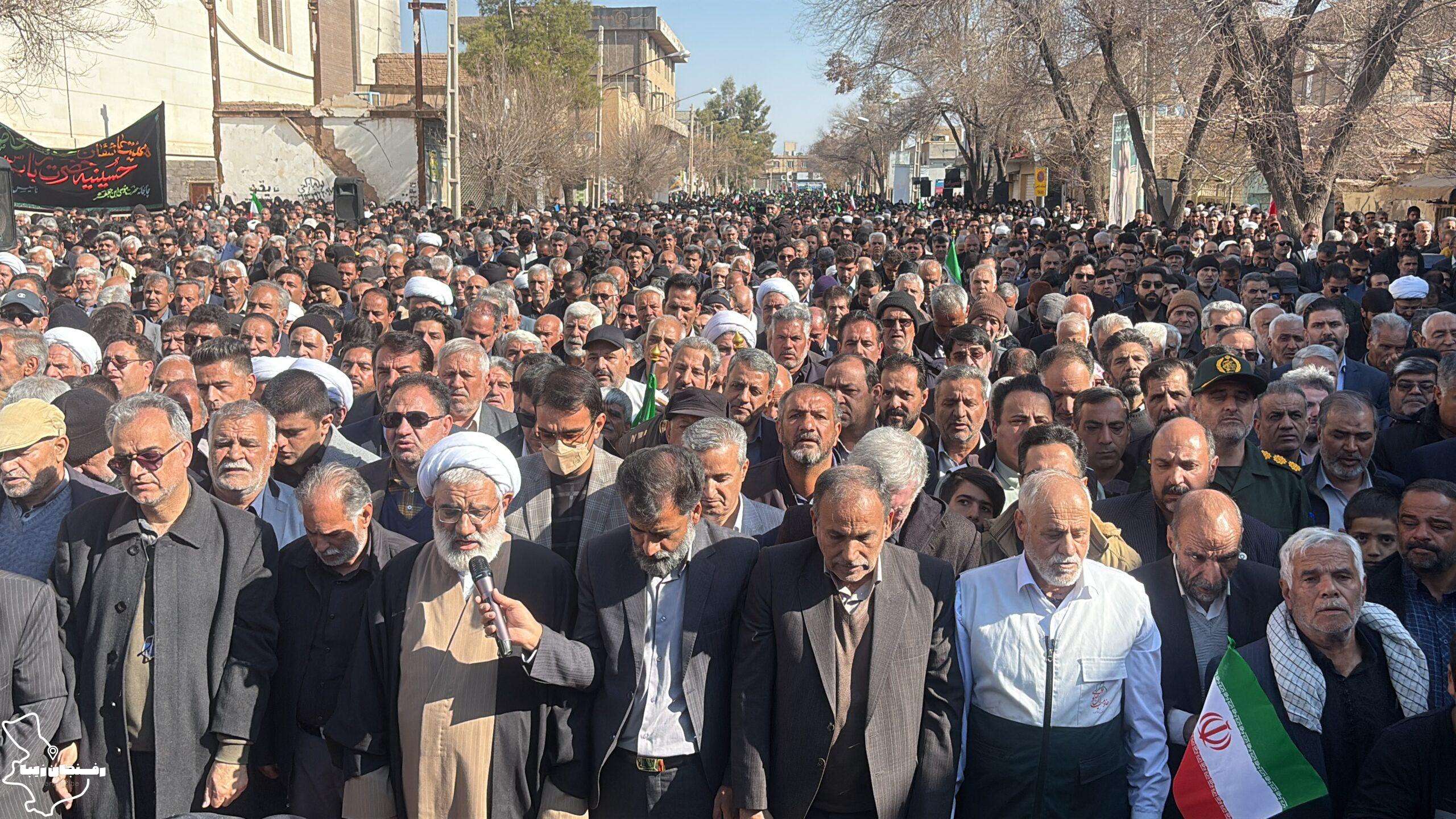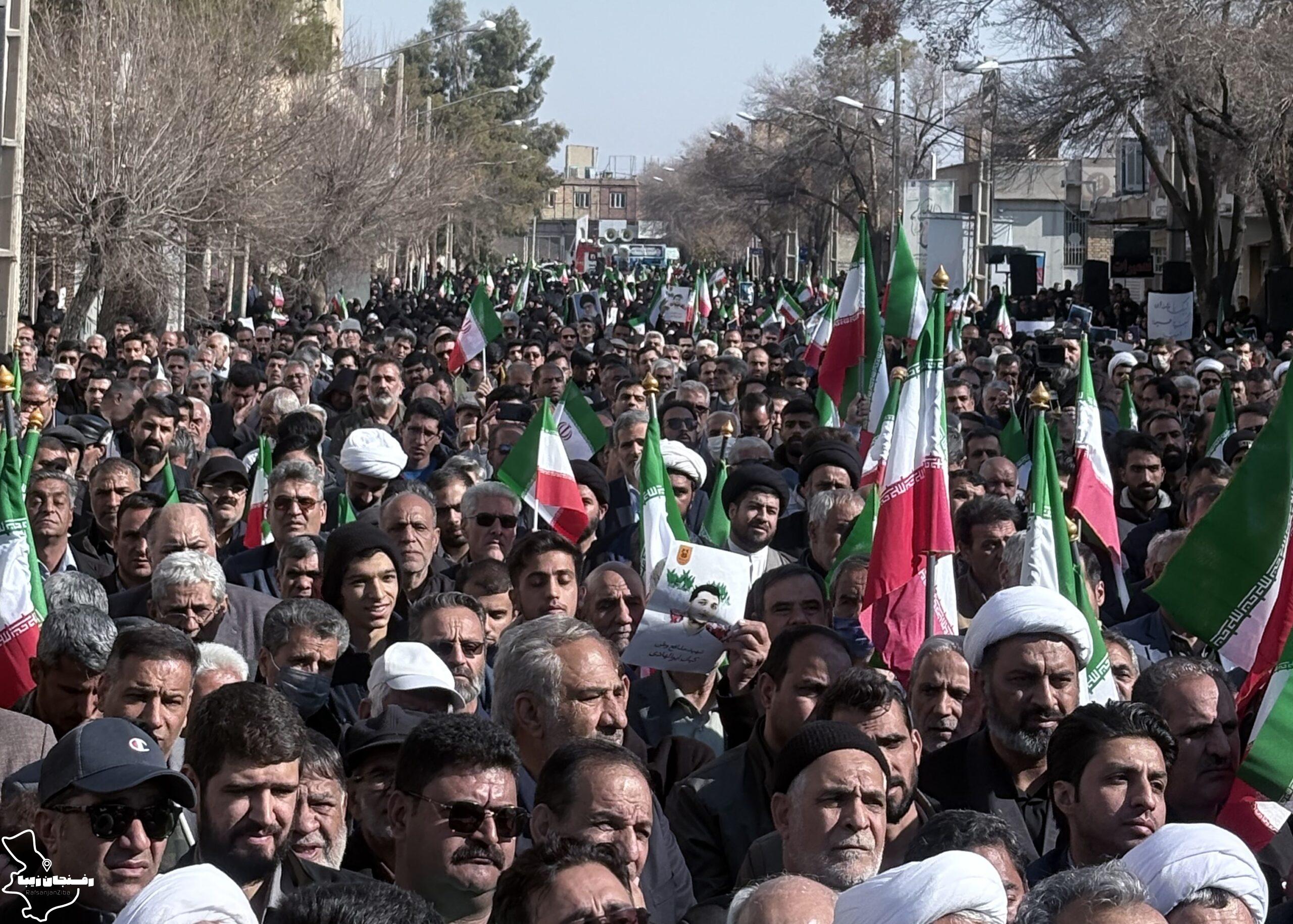 رفسنجان زیبا | همزمان با اجتماع مردمی محکومیت اغتشاشات در شهرستان رفسنجان که صبح روز دوشنبه ۲۲ دی در میدان حضرت ابراهیم(ع) و خیابان سعدی برگزار شد، پیکر شهید مدافع امنیت «کیان ابوالهادی زاده» تشییع و در مزار کمال آباد به خاک سپرده شد.