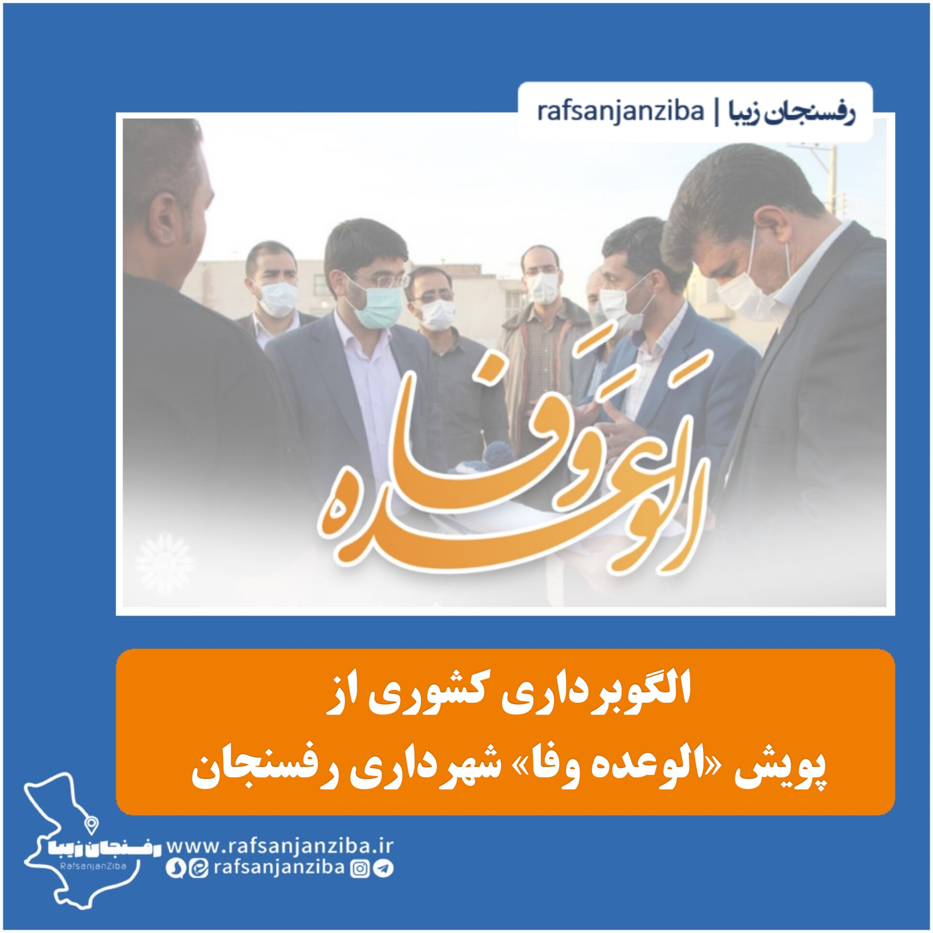 پویش «الوعده وفا» شهرداری رفسنجان که با هدف ارائه گزارش وعده های شهردار در محلات شکل گرفته بود، گستره سراسری پیدا کرد.